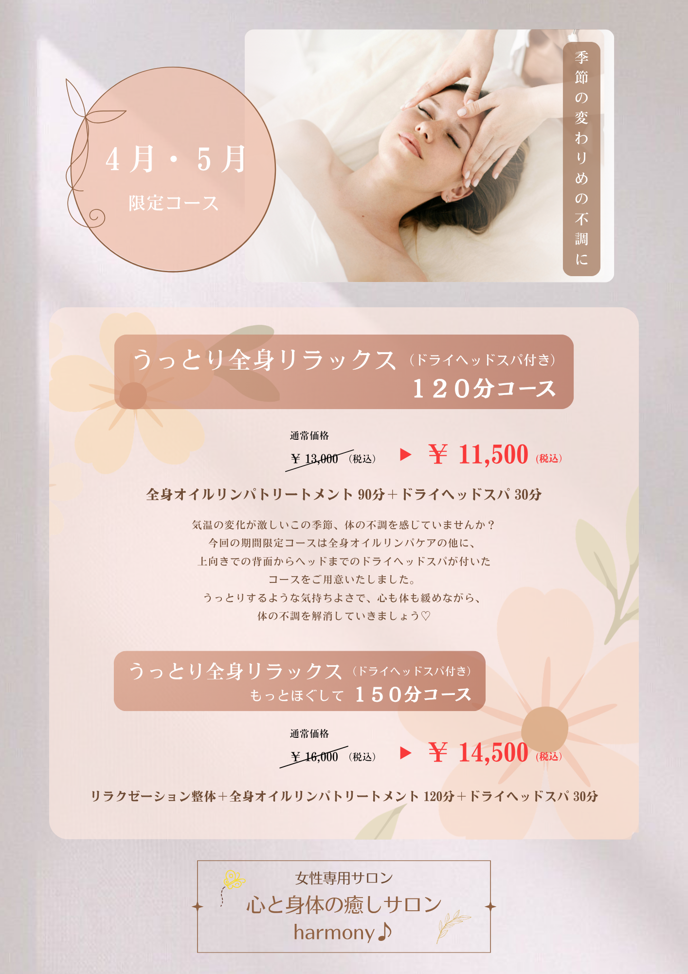 4月・5月の期間限定お得なコース!